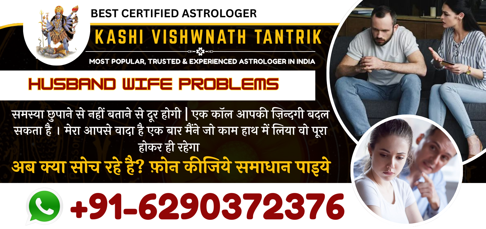 प्रेम विवाह, शादी में समस्या, ग्रह क्लेश, पति पत्नी में अनबन, सौतन से छुटकारा, पारिवारिक समस्या, किया कराया, खिलाया पिलाया, बचपन का प्यार, वीजा, विदेश यात्रा, खोया प्यार वापस पाएं, सास को काबू करना, प्यार में धोखा खाए प्रेमी प्रेमिका एक बार अवश्य संपर्क करें +91-6290372376